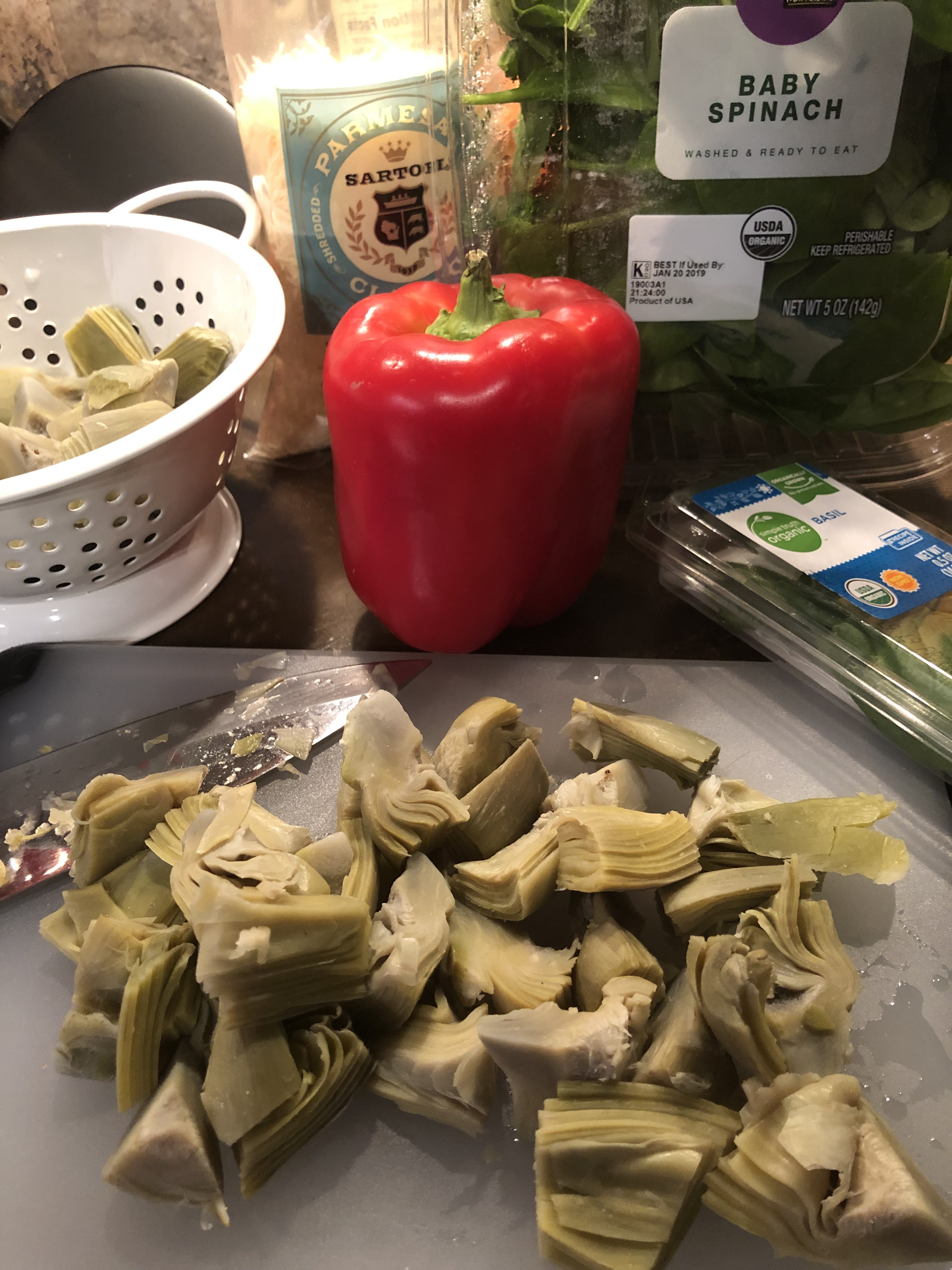 1 10-12 oz package frozen artichokes thawed and large chopped