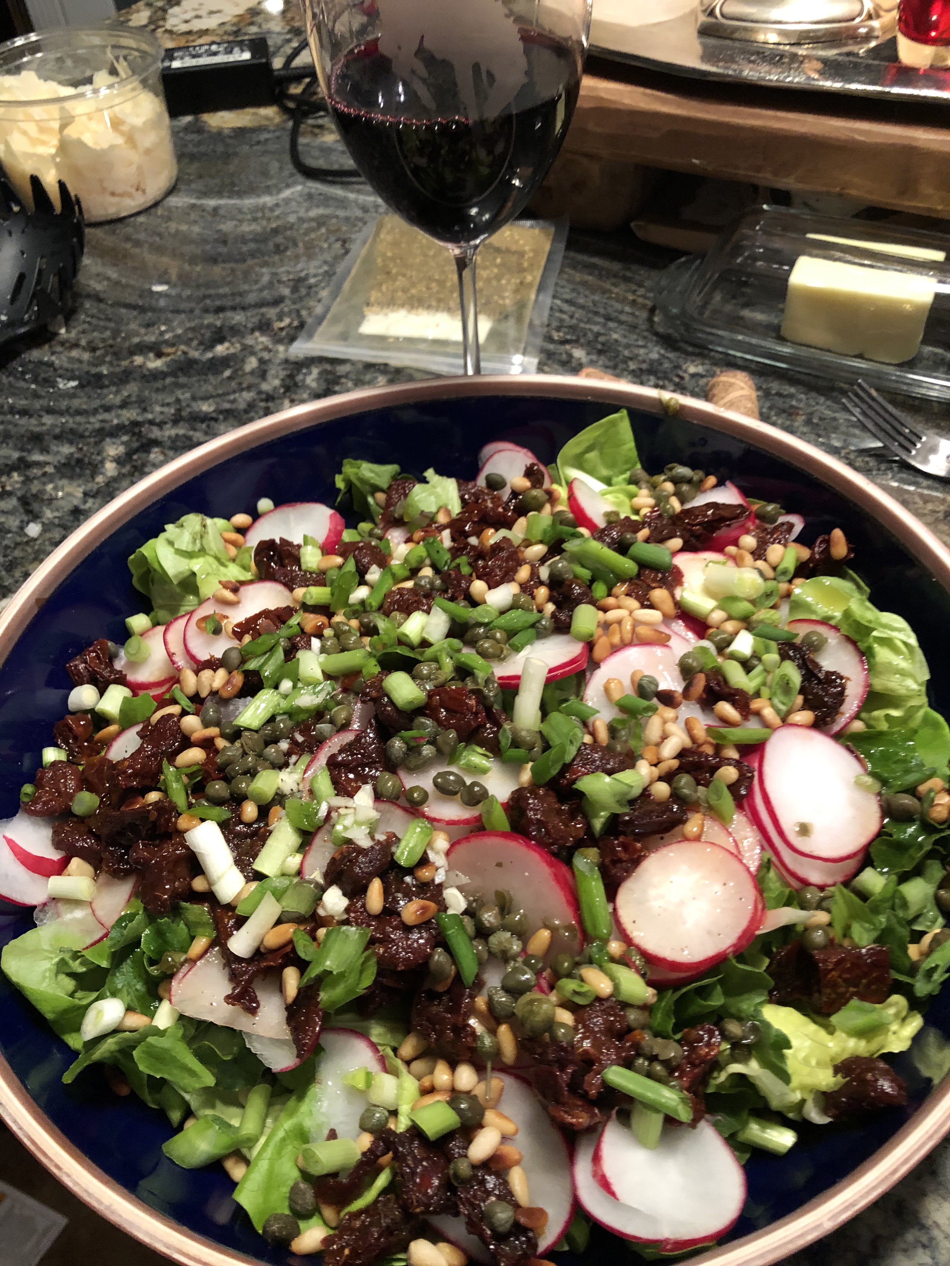 Butter Lettuce Salad with Sun-dried Tomatoes and Radishes.