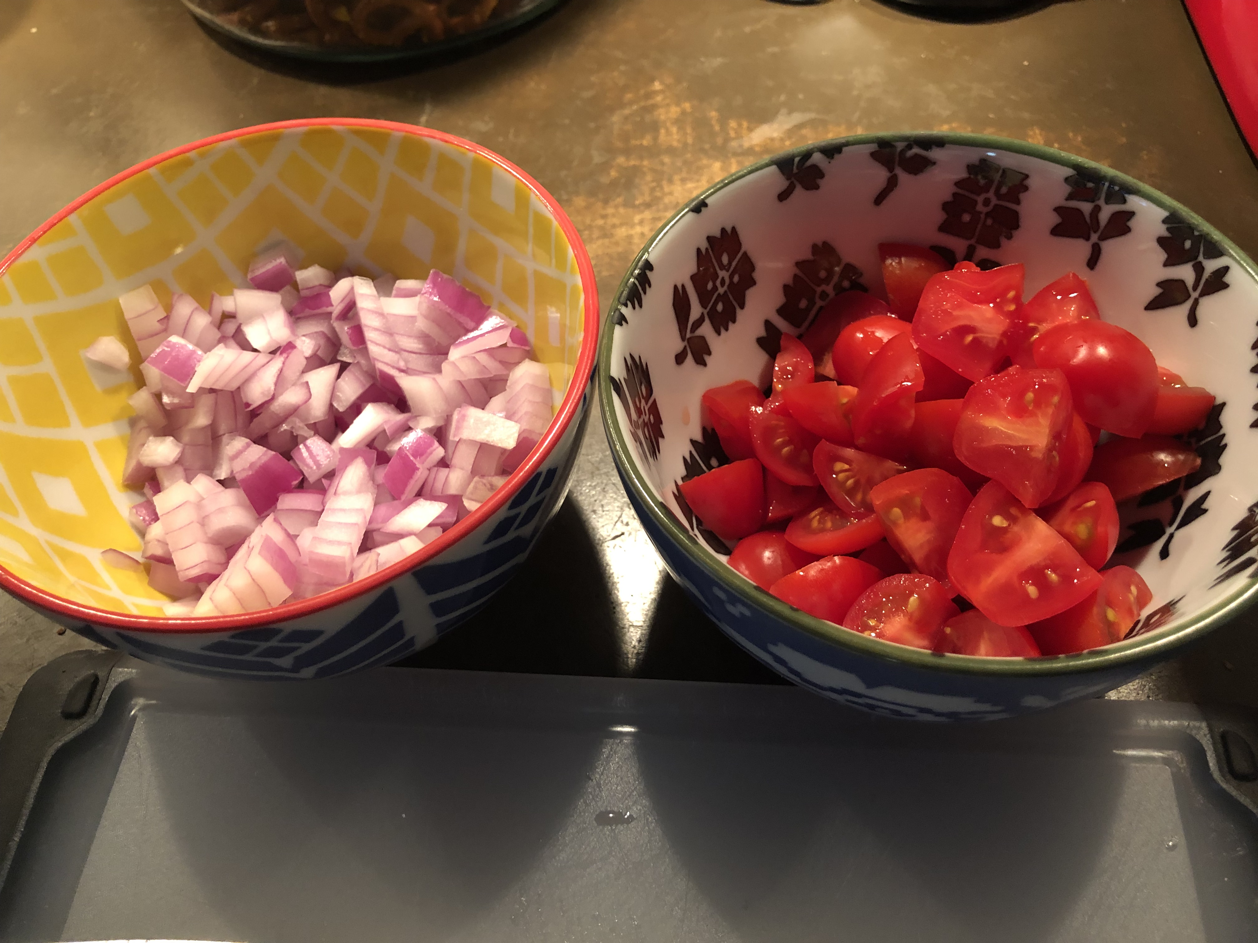 1/2 Red Onion diced (the other half of the the thinly sliced one!)